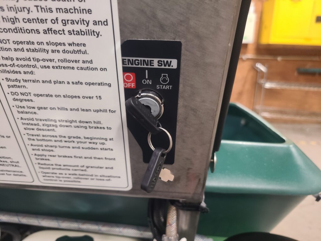 A second product on board saves tons of time versus carrying a backpack sprayer. Spot spray from 2-gallon auxiliary tank Includes a 12-volt battery powered pump, 25’ coil hose, Trigger Jet spray gun with adjustable nozzle, pressure gauge, and carrying pouch. Powered by the Electric- start battery or a replaceable Dewalt 12-volt 5 Amp Hour tool battery (Dewalt Battery and charger not included. Option to spray out of front nozzle from auxiliary tank